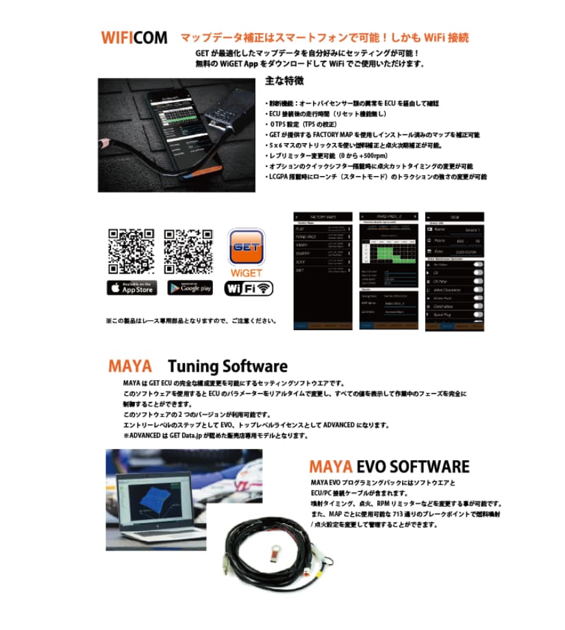 さらにECUを個別にカスタマイズするにはPCセッティングソフト MAYA EVO以上をご購入頂く事でパフォーマンスをフルにご使用頂ける商品です。