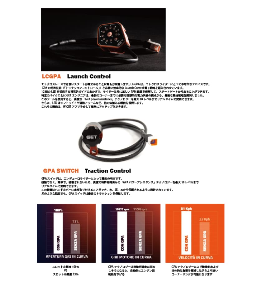 されています。トラクションコントロールレベルの調整にはGPAスイッチまたはLC-GPA が必要になりトラクション
